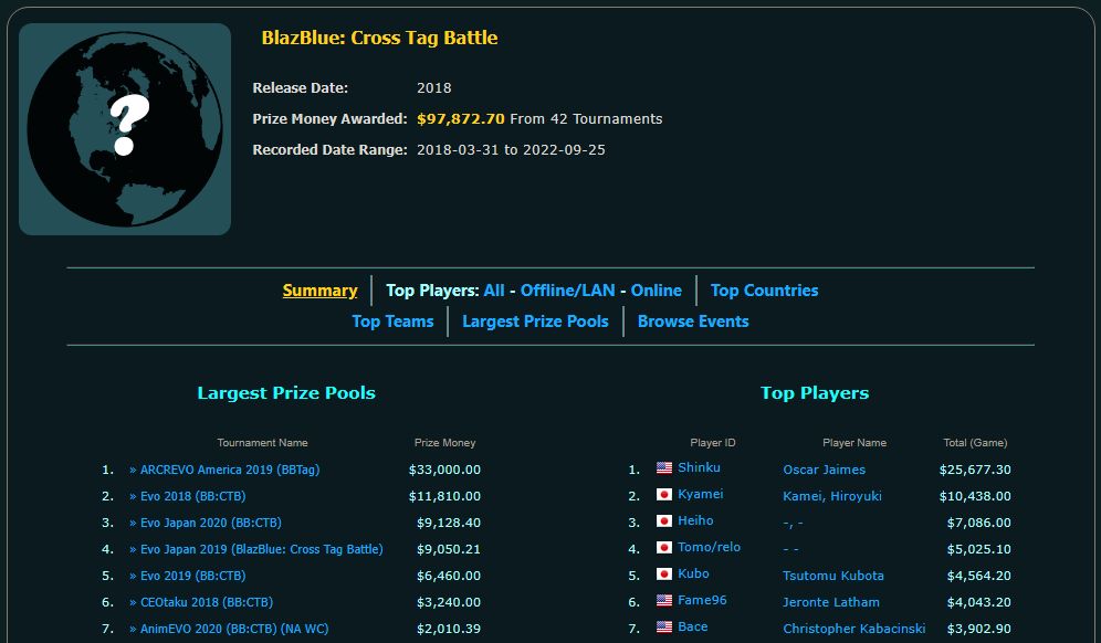 Unbelievably huge prize awards are allocated for top winners for DragonBall FighterZ eSport tournaments. The 2019-2020 DBFZ World Tour Finals alone awarded $80K in cash prizes! To date, DragonBall FighterZ has accumulated an approximate total of $422K!