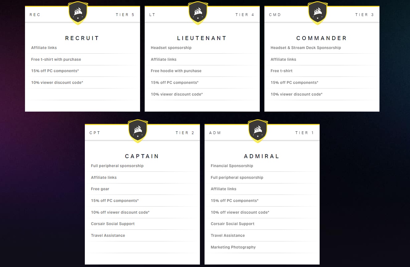 Figure 2-3. Corsair Sponsorship/Affiliate Tiers