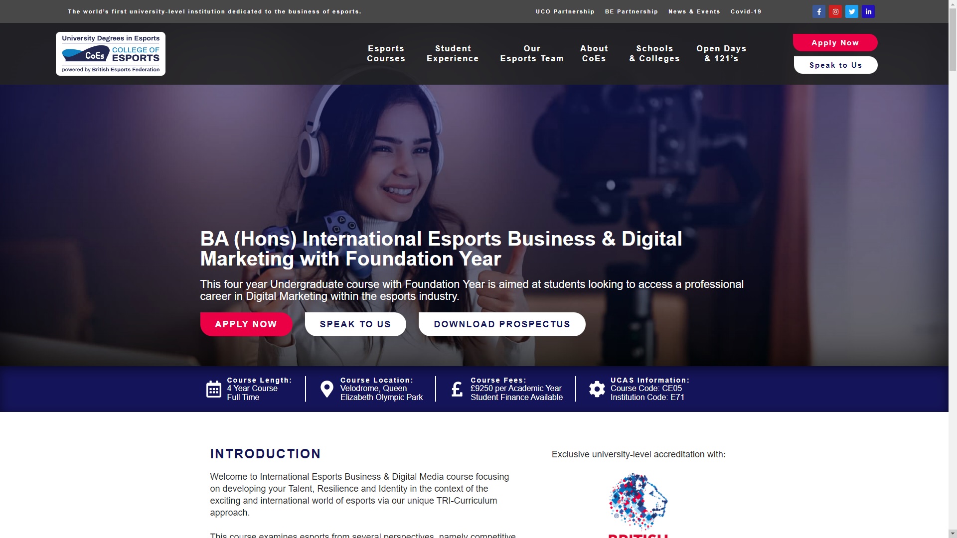 This led to the creation of a degree specifically geared toward the industry called Esports Business & Digital Marketing, which is currently being taught at the College of Esports, an institute explicitly made to cater to students wanting to go into the esports industry. The College of Esports is a university that has partnerships with various institutions, including the University College of Osteopathy, British Esports, Sports Leaders, and General Sports Europe.