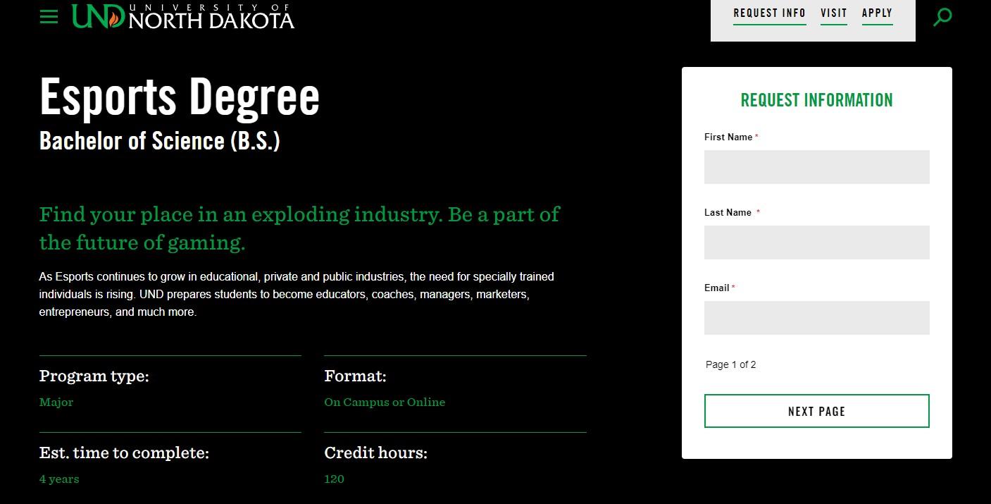 Figure 2-2. BS Degree of Esports at University of North Dakota