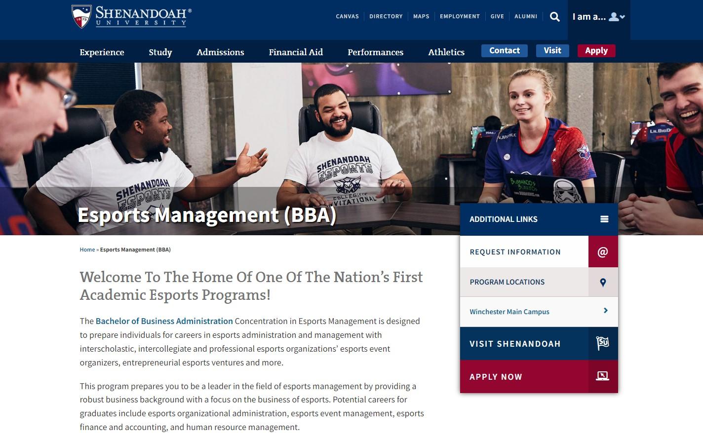 Figure 1-2. Esports Management Degree at Shenandoah University