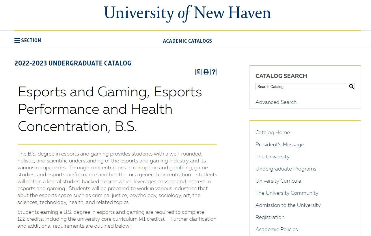 3. Esports Performance and Health Concentration (B.S) - University of New Haven