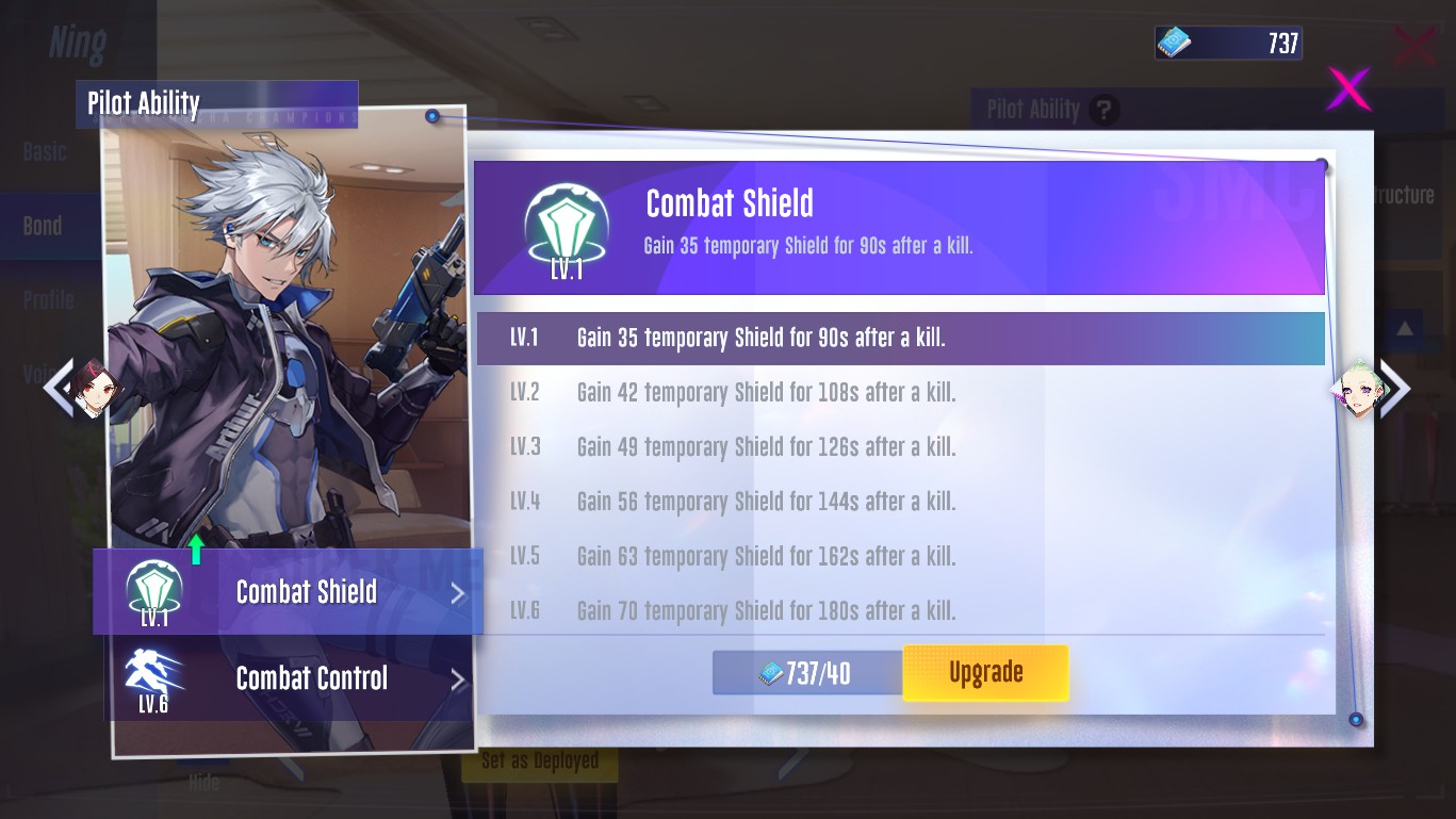 Ning's Mastery is quite simple, permanently increasing up to 210 the maximum DUR of the mecha. If your mecha has 3000 DUR base and 100 Shield, in total it would have 3100 useful durability; with this Mastery the wick would have 3210 DUR base and 100 Shield, a total of 3310 of useful durability.