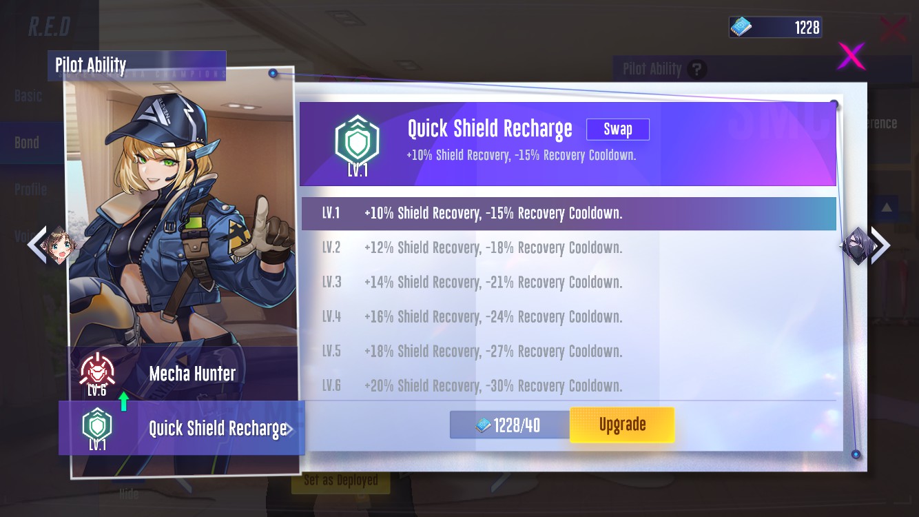 Equally a pretty decent mastery for any player; this will help us a lot with those mechas with little DUR or very slow, since we will have an increase in shield recovery (We will recover more points from the shield per second) and in the same way we will have a decrease in the amount of waiting time to start recovering the shield (We will start recovering the shield sooner).
