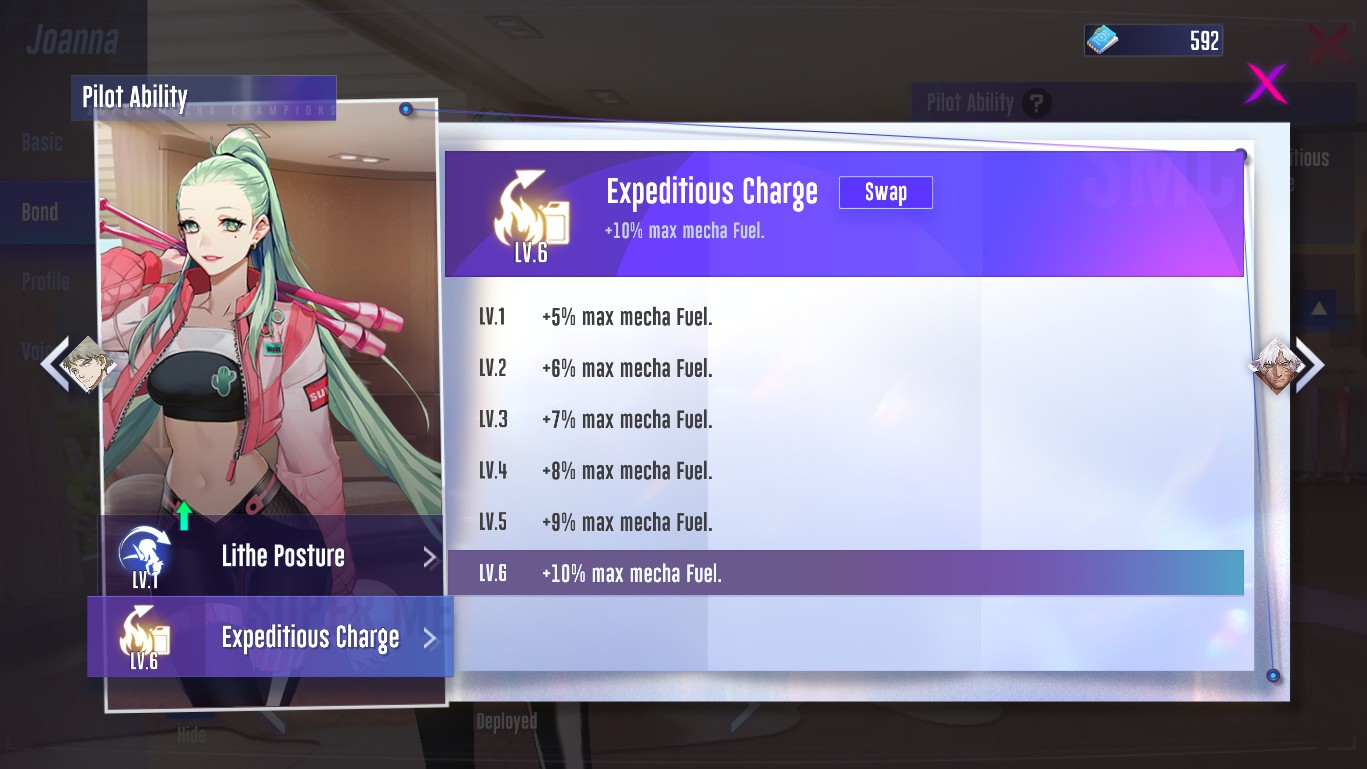 For the pilot that is best suited for this build based on the Core II, it couldn't be more obvious. And that pilot would be andromeda's own pilot; Joanna, who with her anti-mecha ability we can have up to 10% more, for the maximum fuel capacity.