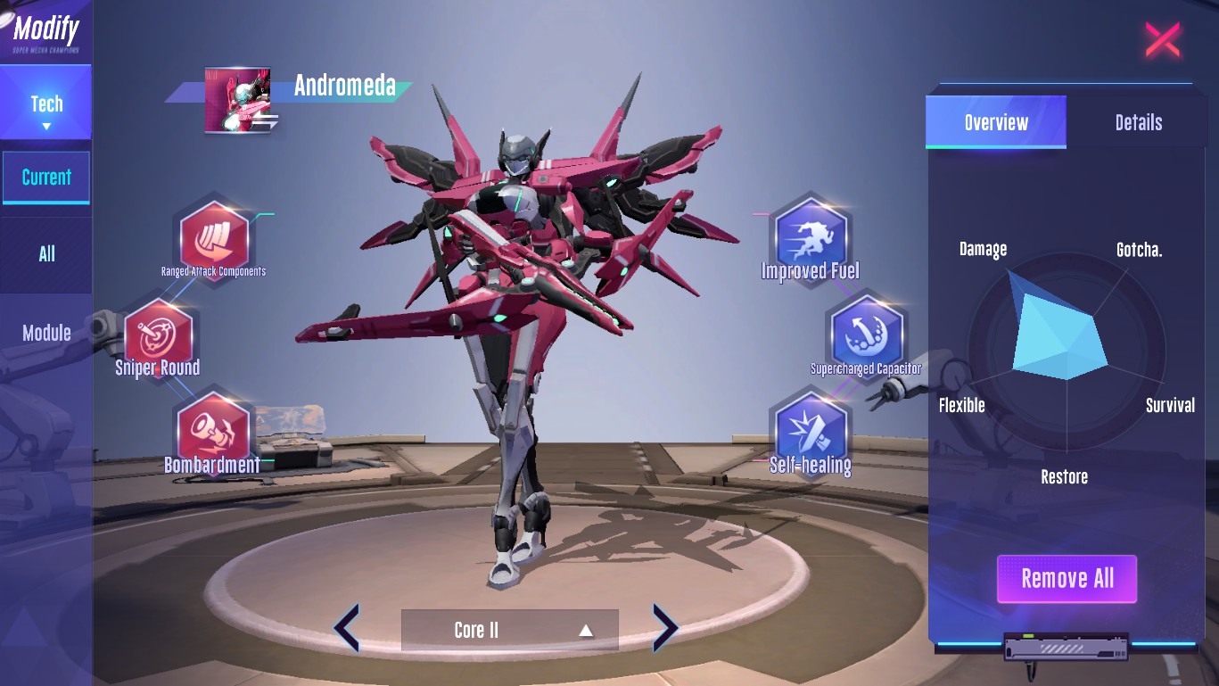 - Since Andromeda is a low DUR mecha, it would be best to use it at a long distance; in addition to that in that way you can take advantage of the tech of the build.