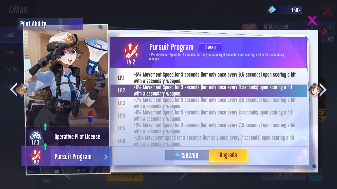 Lilian: Her Mastery "Pursuit Program" should help us to gain more mobility that will be useful in solo mode.