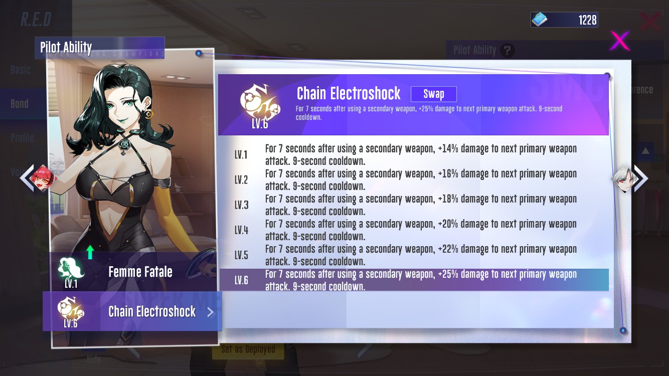 Norma: Her Mastery "Chain Electroshock" should help us to gain more damage after to launch our missiles, very useful in squad or solo mode.