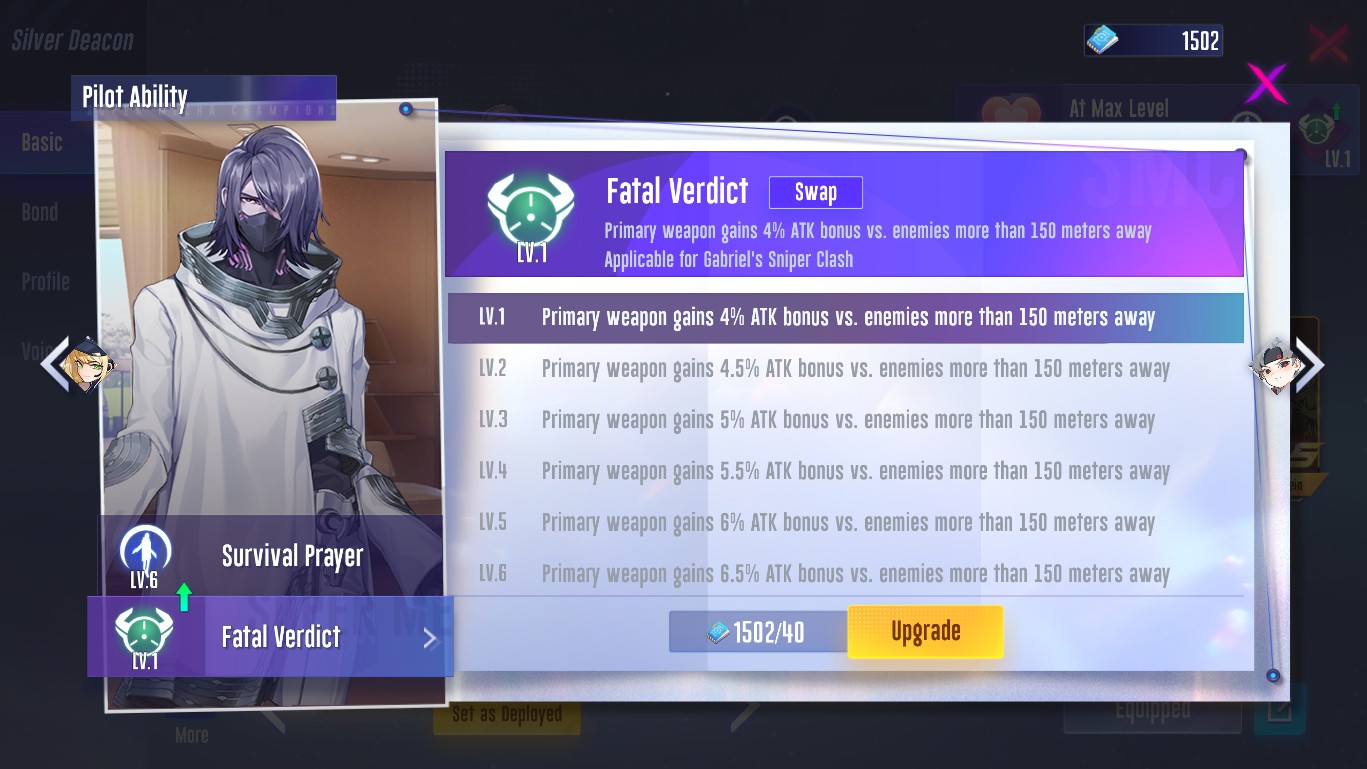 Silver Deacon: His Mastery "Fatal Veredict" should help us with the damage at long range in squad mode.