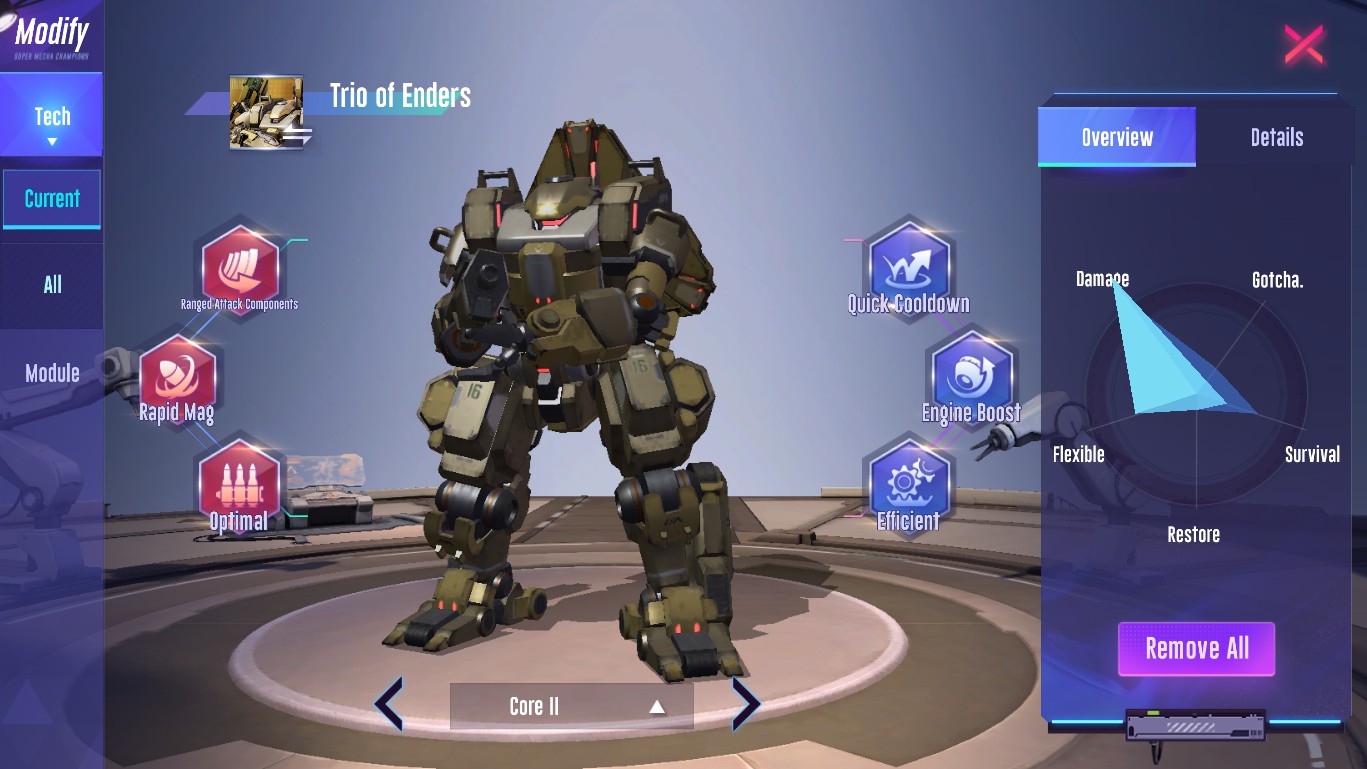 Now the reason why you consider this configuration difficult. The tech of this build greatly increases trio's combat capability, even increasing Trio's burst. As you can see, they improve the reload rate for the main weapon, and decrease the cooldown of the combat skill (To increase trio's burst).