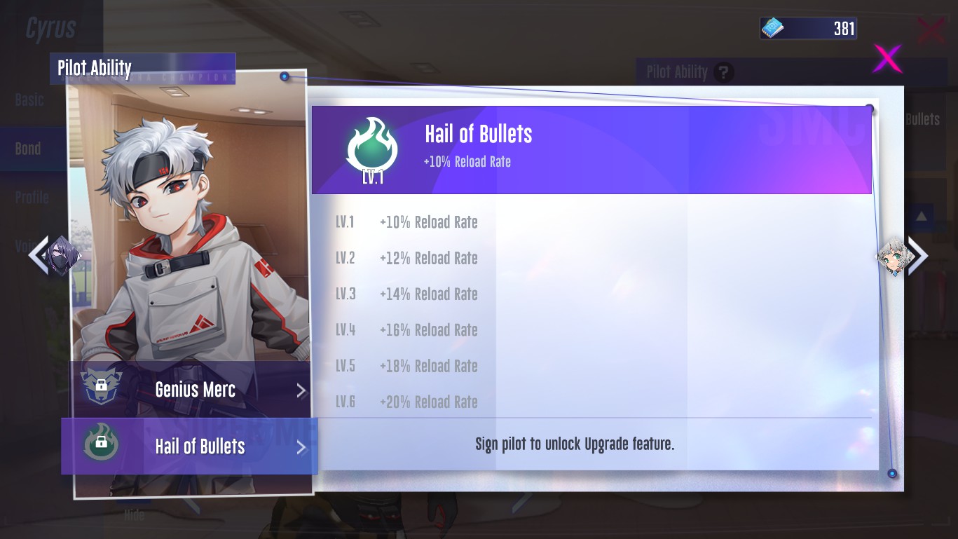 Cyrus: The pilot of Trio of Enders, they have the ability to increase the recharge rate by up to 20%, hence it is an option, he would be more focused on the ability to exert pressure on enemies.