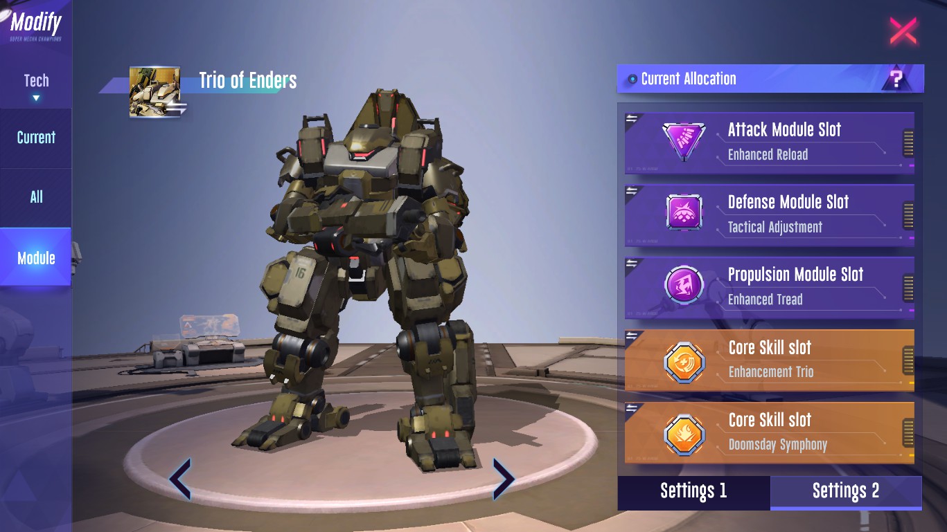 Now the reason why you consider this configuration difficult. The tech of this build greatly increases trio's combat capability, even increasing Trio's burst. As you can see, they improve the reload rate for the main weapon, and decrease the cooldown of the combat skill (To increase trio's burst).