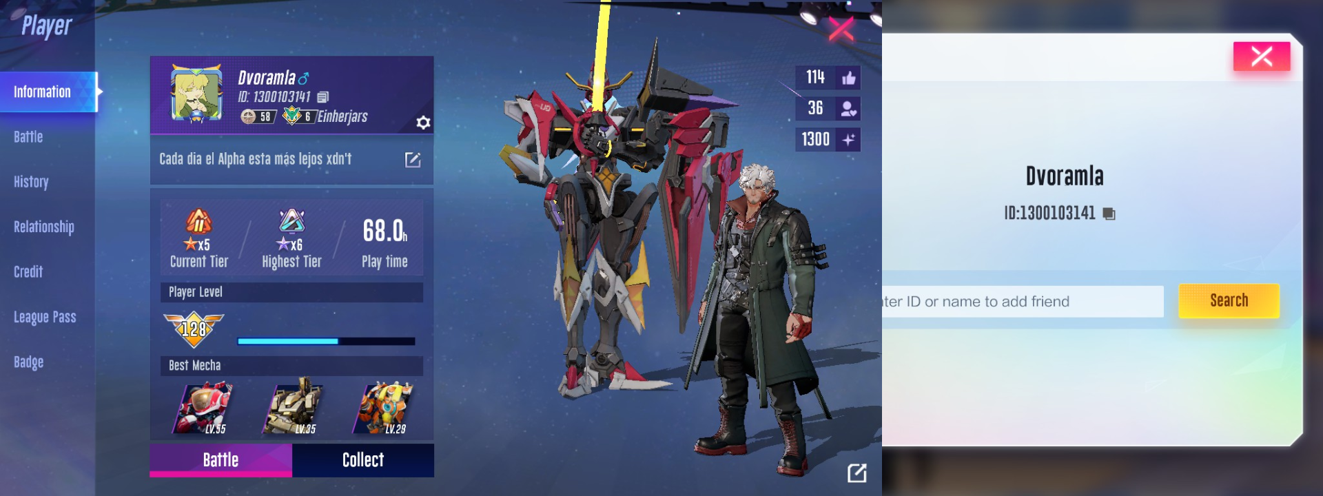 The range of my profile, as well as the Mecha and Pilot shown in the image may vary, depending on the date of publication and the time you send