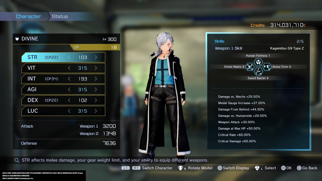 Better response on post Sword Art Online: Fatal Bullet Build Contest Submissionthis is the first of the 3 builds that i will be submiting today this is an immortal tank build that has 2 variations the main build is the first variation which gives 21,083 health with 7636 defence in combination with the defence buffs this give you 95% dmg reduction against your extrmly large health pool also the human fortress skill stops you from flinching and knock back the hyper awarness skill allows you to instantly doge any single attack and when activated and you doge some thing you become invincible for 10 to 15 secounds the skill conceal makes it that enemys will have trouble attacking you even if your by yourself and fighting a boss it will have trouble targeting you then the skill sword barrier allows you to block all bullets your facing and with the hit box being extrmly big you end up blocking bullets that are behind you aswell also the skill sheild matrix makes you invincible while stoping you from moving it heals you and lets out an explosion the gadgets used make you imune to status effects and give healing the skill viral shoot decreses the dmg and defence of all enemys in the feild and healing field shoot heals a large portion of your health the weapons used are the 180mil bounty procyon pistol that has a low stat requierment and solid dps the secound weapon is a kagmetsu type z the third highest dps sword that is also the most build flexible sword thats does upwards to 101,000 dmg per crit and with the crit rate +60% on the weapon and the 315 luck you crit on average every 4 hits this build gives solid dps and near immortality the secound variation gives 21,877 health but only 7092 defence but in return for the lower defence you get pasive regeneration from the max hp recovered over tim accesorie and that hp regen is boosted by the hp recovery accesorie also all cool downs are now lower