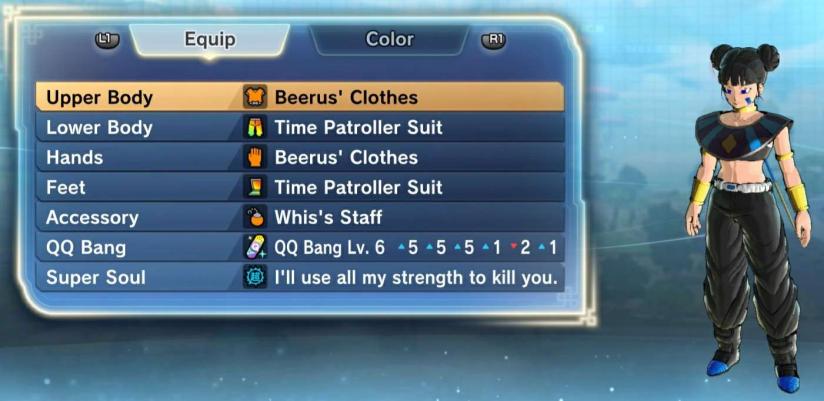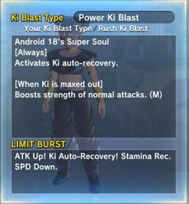 Our equipment and stats for this build are meant to mitigate the effects of our weaknesses, while boosting our strengths. It's for that reason that we will be using QQ Bang that boosts health, stamina and ki by the max of 5 but also boost basic attack and ki blast supers. We need as much health as we can get to make up for the low health we have at base, we need decent stamina so that we can teleport, dash and block a lot since we wont have a lot of health. We need to have a decent amount of ki as we were not using "Meditation" in this build and need to have enough to still have use of our ultimates even after using other moves and to reach the ki requierment for our transformation. Basic attack and ki blast supers can only be boosted a small bit by our equipment since we have other stats that take priority, but we willl be maxing them out in our stat point selection. If you dont have a QQ Bang like this, just use gear that primarily boost those stats. Now for the super soul we will be using, which will be "I'll use all my strength to kill you" which gives us auto ki recovery and boost our basic attack damage when our ki is at max. the limit burst ability increases our attack power and increases our ki recovery speed. This super soul will allow us to keep our powerful transformation, nulifying its weakness. It also gives us the power ki blast, ki blast type which is a good charged blast to have as its damage is decent and its fast.