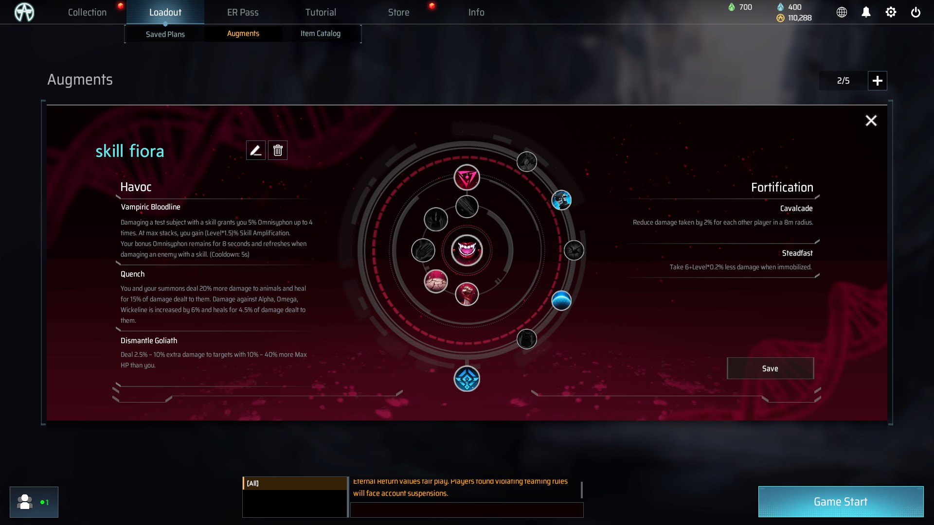 This build is a skill damage focused Fiora build based on toughness, survivability and sustainability. The damage is a bit lower compared to the many other skill damage focused Fiora builds, but if you make good use of Touche activation and Fente's edge attack, you can still do good damages. Especially, the build provides "Two Block" effect that combines a totem and a two-handed sword, which are useful in many urgent situations. Lastly, because of the frequent slow effect caused by Almas, it guarantees good performance in a party play such as duo. This build shows its true value when you play with the more offensive type duo partner with huge damages, whom you can help as a tanker for him/her attacking well.